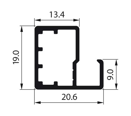 Ramka aluminiowa C10 to wąski profil z delikatną obwódką z przodu, dzięki czemu front staje się optycznie lżejszy i bardziej elegancki. Doskonale sprawdza się przy nieprzezroczystym wypełnieniu, szczególnie jako rama do luster oraz frontów meblowych. Profil przystosowany jest do wypełnienia o grubości 4 mm i ze względu na swoją konstrukcję wymaga zastosowania specjalnych zawiasów do ramek wąskich
